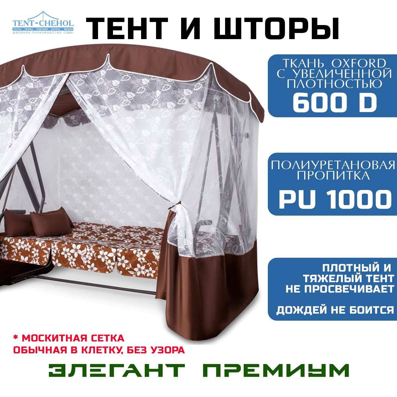 Тент и шторы для качелей Элегант Премиум 600D, шоколадный, 207х143х195
